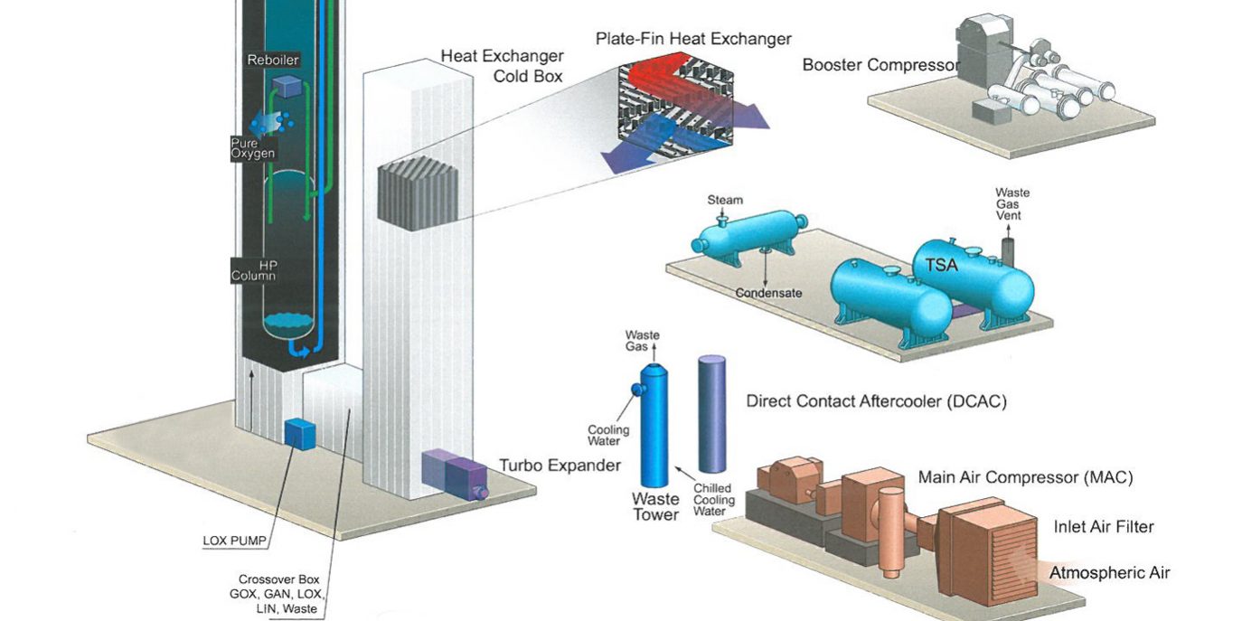 در این پروژه با روش Cryogenic، مقدار ۷۲۴۰۰ NM۳/hr گاز اکسیژن با درصد خلوص ۹۹.۸% و ۴۰۰۰ NM۳/hr گاز نیتروژن تولید خواهد شد.